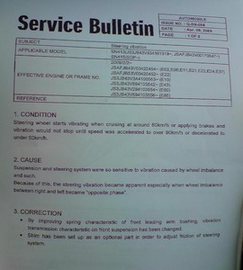 - Service Bulletin Q-SN-004: биение руля у Jimny (2010-11-11)