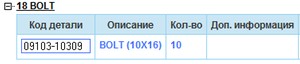 - Suzuki 09103-10309 (болты крепления ведомой шестерни) (2011-06-01)