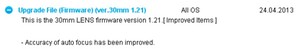 - NX Lenses Firmware Upgrade (1.20) (2011-04-21)