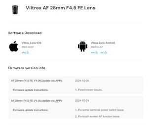 - Viltrox AF 28/4.5: Firmware update (PC) (2025-07-21)