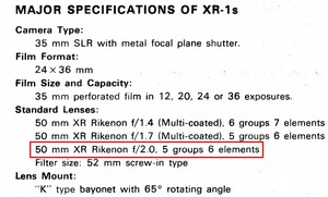 XR Rikenon 50/2 (Related notes)